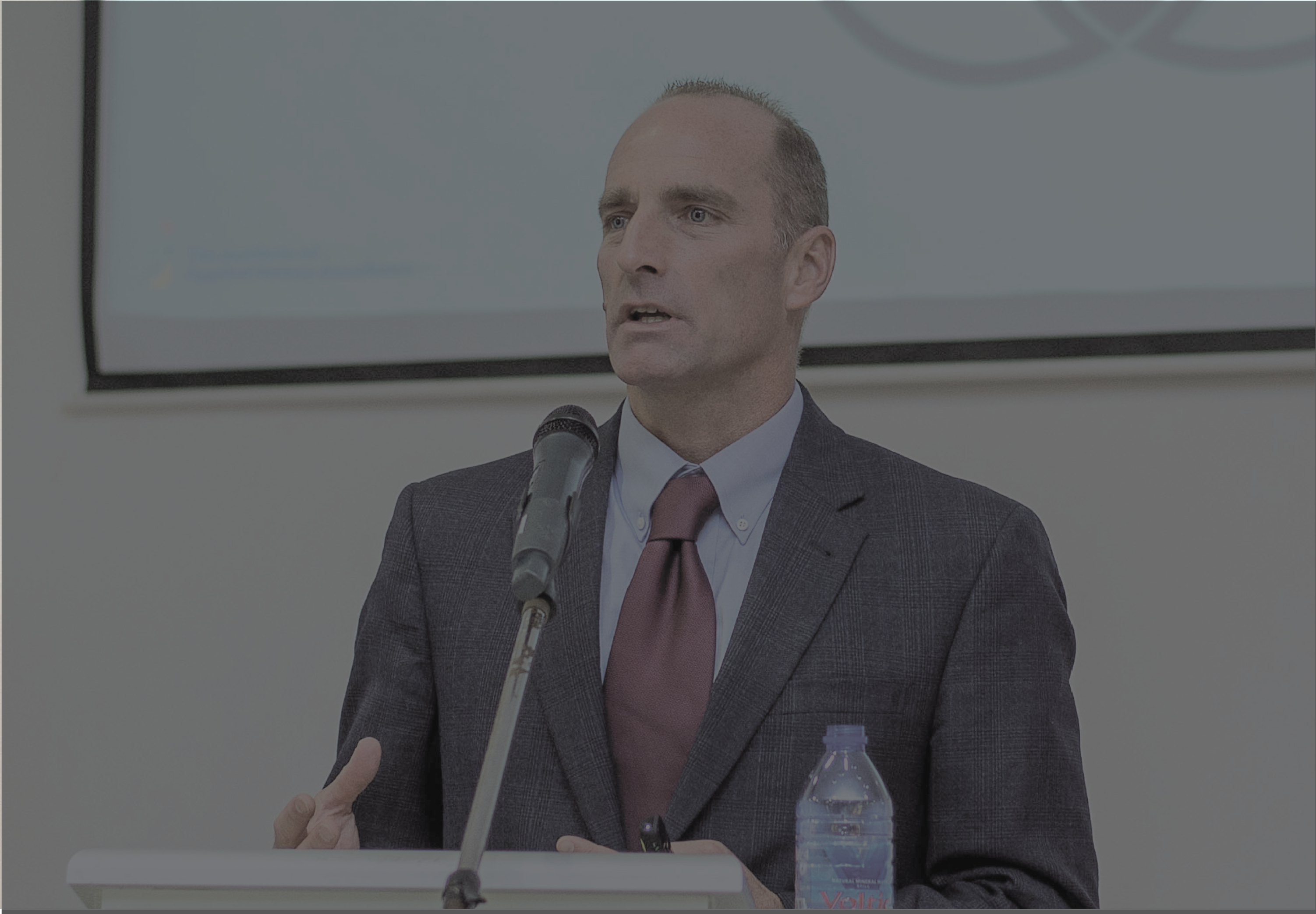bruce speaking in ghana at podium
