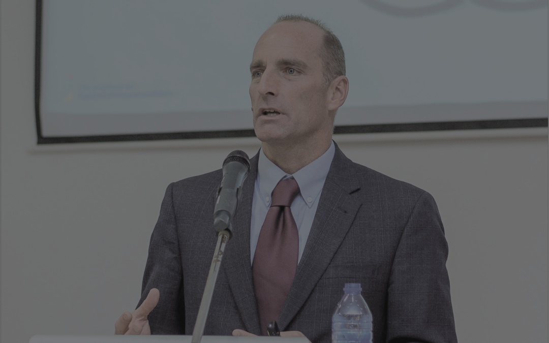 bruce speaking in ghana at podium