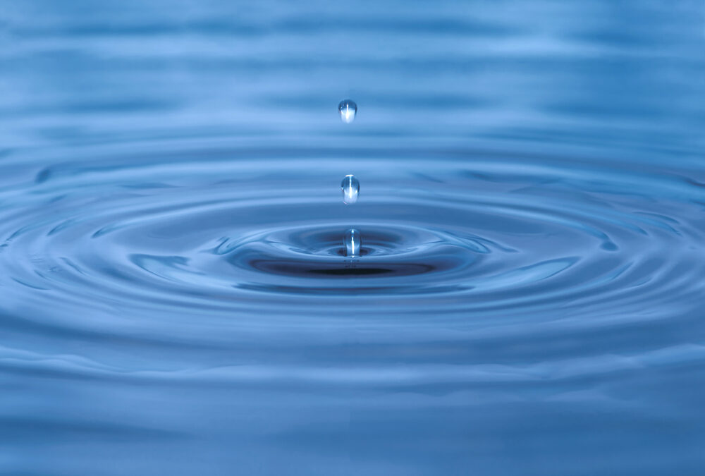 Water,Droplet,Dripping,Into,Blue,Pool,Creating,Ripples,And,Abstract